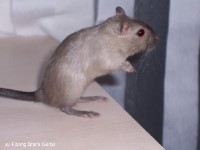 Während die Allele des Colour-Locus alle Farbpigmente reduzieren, die des Pink-Eyed-Locus nur die schwarzen bzw. dunklen Anteile verdünnen so ist der G-Locus genau für das Gegenteil verantwortlich. Er reduziert den roten Farbstoff im Tier und gibt der Fellfarbe ein dunkelgraues Aussehen. Schwarze Rennmäuse und die dunkelgrauen Anthrazits des Grey-Locus sind manchmal nur im direkten Vergleich oder von geschulten Augen zu erkennen. | |